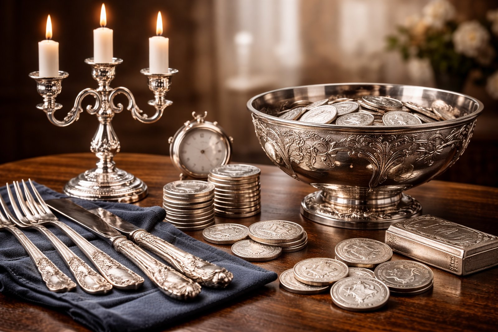 Seit vielen Jahren sind wir ein verlässlicher Ansprechpartner für den Silberankauf im Rahmen von Nachlässen, Haushaltsauflösungen oder Sammlungsauflösungen. Ob Silbermünzen, Silberbesteck oder andere Silberobjekte – wir wissen, dass es sich dabei häufig um mehr als bloße Wertgegenstände handelt. Deshalb legen wir großen Wert auf eine ehrliche, transparente Bewertung.